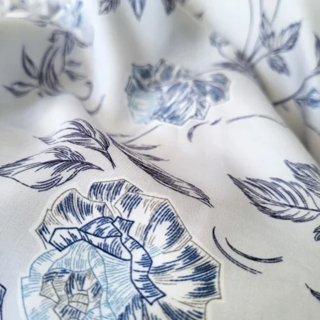 Tekikott lukuga 220x200cm 100% Tencel satiin, “Blue White Flower”